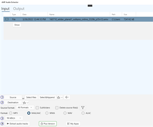 Приложението извлича аудио от видеофайлове MP4, HEVC, AVI,MKV и WMV и записва песни във формати MP3, ALAC, M4A, WAV или WMA с високо качество на звука. Обработвайте няколко файла наведнъж или извличайте аудио от единични файлове.