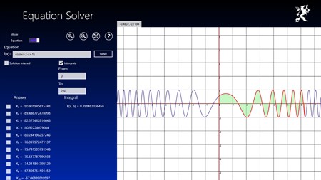 This is the first app that allow to write any equation and find all real solutions, also a graph will be displayed to study better the equation, no matter the difficulty of the equation. The app provides an integral evaluator which shades the integral interval area and shows the answer. The app provides 2 ways to solve an equation, if you have a polynome you can use the polynome option, otherwise you use the general equation feature. You only need to write the equation and in few clicks you will have all the real answers, also you can select a manual interval to find a specific solution for the equation. The app is designed to use "x" as variable.
