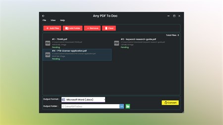 Any PDF To Doc app is designed to convert Microsoft Office Word files(doc,docx,rtf) to PDF format(.pdf) and also convert PDF to Word(docx,rtf). It provides a reliable conversion with 100% accuracy You can convert multiple microsoft office word files to pdf with just one click. You can convert multiple PDF files to word with just one click. You don't need to separate microsoft office word files from folder. this application is automatically get only word files from folder and convert all word files to pdf. Simple Any PDF to Doc and Doc to PDF converter. ⭐ Convert Docx to PDF ⭐ Convert Doc to PDF ⭐ Convert Rtf to PDF ⭐ Convert Word to PDF ⭐ Convert Word to Text ⭐ Convert Word to Rtf ⭐ Convert Word to XPS ⭐ Convert PDF to Word ⭐ Convert PDF to Docx ⭐ Convert PDF to Rtf ⭐ PDF to Word Converter Offline ⭐ Word to PDF Converter Offline Note: In order to use this application Microsoft office is required to install in your pc. Scanned PDF pages will appear as images in word file when you convert from PDF to word. Download and enjoy it!