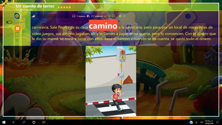 Para mejorar la comprensión y lectura, este juego trabaja con ejercicios que estimulan al niño, pues según avance en la lectura se van mostrando imágenes y reproduciendo sonidos, creándole curiosidad por leer las palabras para ver que es lo que aparecerá. Es un juego interactivo en primera persona, pues la lectura la realiza el niño directamente hablando hacia la computadora (a través de micrófono), Teléfono, Tablet, Xbox (a través de Kinect) o cualquier otro dispositivo Windows 10. Cada ejercicio tiene un nivel de calidad mínima en la pronunciación y tiene indicado cuantas veces debe repasarse, permitiendo generar mayor habilidad en la correcta lectura de las palabras y sobre todo en la pronunciación adecuada de ellas, además que va corrigiendo la articulación en el habla.