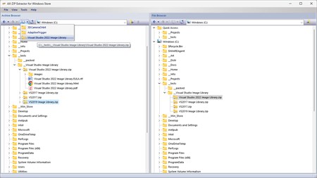 AX-ZIP Extractor utility views ZIP archives and archives of other types as folders containing folders and files whose structure is shown as a tree. Thus the root folder of archive will be displayed as an icon associated with archives of that type. AX-ZIP Extractor working space is made up of two windows - Archive Browser and File Browser. Archive Browser contains a tree representing the structure of disks, folders and archives - files with extension of supported archive types. To open archive one should simply click "+" sign situated on the left of archive name. File Browser shows full structure of disks, folders and files. All operations in AX-ZIP Extractor concerning archive management involve dragging of items from one window to the other.