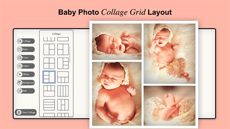 Get the Baby Pics Collage app now and show all the amazing photos of your baby. Start making fantastic collages to share with family and friends. Download the app now and show your creativity.