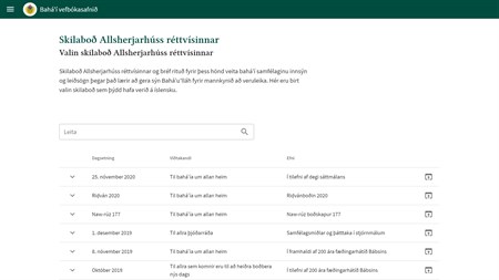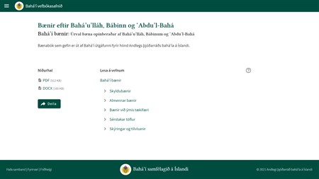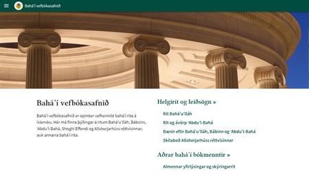 Bahá’í vefbókasafnið is the authoritative online source of Bahá’í writings in Icelandic. It contains translations of selected works of Bahá’u’lláh, the Báb, ‘Abdu’l‑Bahá, Shoghi Effendi, and the Universal House of Justice, as well as other Bahá’í texts.