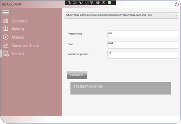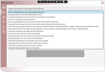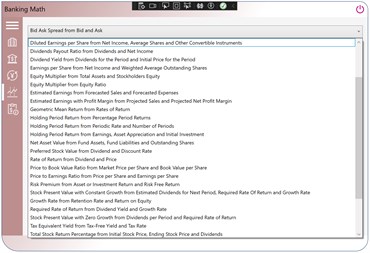 Banking Math gathers several calculi related to banking, corporate finance, financial markets, stocks and bonds, and general finance. Here are the detailed calculi covered: ❖ Banking It covers the calculus of loan payments, compound interest, balances, ratios, etc. ❖ Corporate Finance It covers efficiency ratios, assets, collection periods, contribution margins, debt, free cash flow, etc. ❖ Stocks and bonds It covers book value, bonds, capital assets, dividends, earnings, etc. ❖ General Finance It covers operating cash flow and cash, current and quick ratios, etc. ❖ Financial Markets It covers the calculus of various rates.