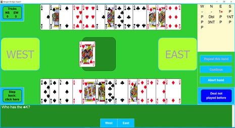 In this app, you can see what Marty Bergen's programmes have to offer and get a taste of how they work. Each time you play a card, an incorrect choice will be met with a comment from Marty why another card is preferred. What better way to learn? Whilst playing, you also have the possibility for the programme to ask questions and give answers. These are questions every good bridge player always asks themselves as the answers will help determine the correct way to play the deal. Each programme contains several deals at a certain level - Beginner, Intermediate, Advanced or Expert. Where not specified, you will be either declarer or defender.