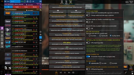 [ EPG ] -------- * 3 epg views: program view, timeline now view, full details view * fast manual or automatic epg association * time progress bar based on epg data * fast manual 2-way track/epg data association if epg data don't match track names * option to display epg channel names similar to track titles [1:1 association] * epg data sorting * exclude empty data * every playlist has its own epg * capability to add a different epg (other than playlist's epg) to any track