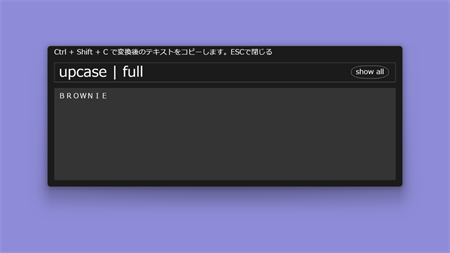 コピー中のテキストを加工するランチャー「Brownie」 ショーカットキーで起動し、クリップボードに存在するテキストを加工できます。 あなたの作業を効率化します。