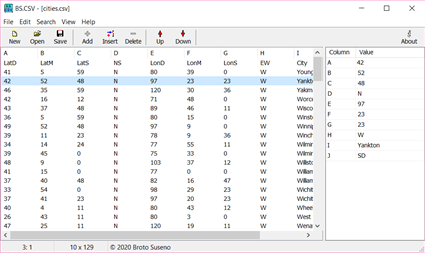 Concise application for editing a Comma Separated Values (CSV) file. Supports export/import text file with other delimiters.