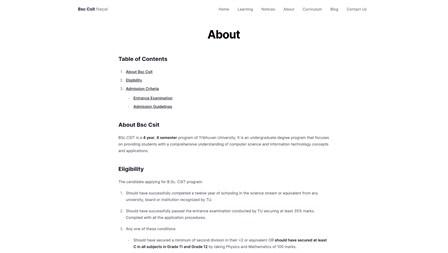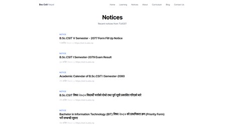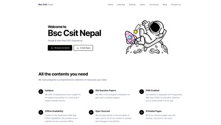 An Ad free and open-source experience for your CSIT journey. Our app is full of features like syllabus, notices, curriculum, blogs, past question papers, printable pages, PWA enabled application and more.