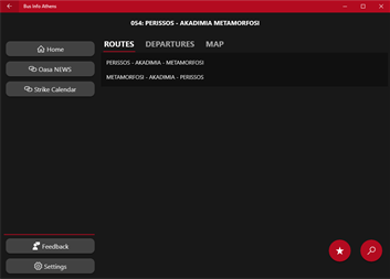 This app will show all available bus lines in Athens. It can display Details for a line, a Route's Bus stops and how much time a bus needs to reach a certain Bus stop. The app needs an internet connection to function.