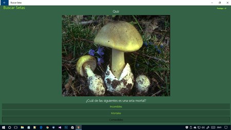 Esta aplicación permite observar algunas setas comestibles y otras venenosas y reconocer las características principales.