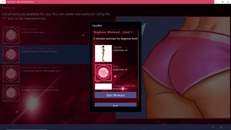 Squat Trainer contains a set of different butt workout, hips and legs exercises which will help you to get a perfect body. Leg, hip and butt muscles are the hardest to train, however Squat Trainer offer you an effective method of training including squat workouts and buttocks workouts.
