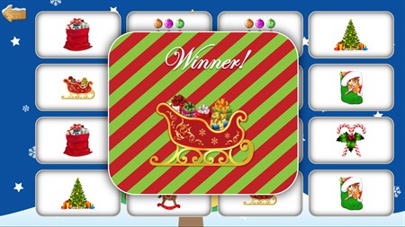 If you love Christmas, and you love matching pairs games, this is for you! Four levels of difficulty containing 30 different Christmas cards, over three different scenes.