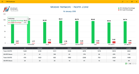 App is meant for data analysis pertains to in house network related parameters like BTS working percentage, DSLAM fault status, Wifi Hotspot working status etc.