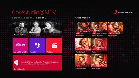 Awe-inspiring. Iconic. Magical •3 words that says all about the Coke Studio @MTV experience •Coke Studio @MTV is an inspiring platform where renowned and upcoming musicians from various genres get together to create an enthralling experience •Breaking barriers, expressing oneself, celebrating... there's so much music can do… Music is for the soul, not for the ears ! •This App brings you the rich and diverse music styles of India that brings together the biggest musicians of India combining independent, classical, folk , Sufi and popular genre music in an all new setting encompassing all 3 Seasons; Producers like Rahman, Clinton Cerejo, Amit Trivedi, Ehsaan, Loy, Hitesh Sonik, Karsh Kale among others. Enjoy the music, the experience and the re-live moments with this Music App and share the ultimate fusion project with your friends!