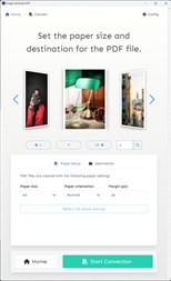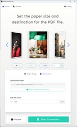 1. Drag and drop image data into the application. Or Specify the folder where the image data is stored. 2. specify the destination of the PDF file that contains the image data 3. click the Convert button