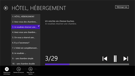 L’application est accessible GRATUITEMENT sur Windows Store. Après son téléchargement dasn votre appareil et son lancement, il y a accessible entièrement le contenu de texte de toute application . En ce qui conerne les enregistements sonores, il faut les acheter.