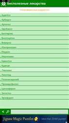 Бесполезные лекарства (Медсоветник ) - это уникальный медицинский справочник, он поможет вам сэкономить деньги и защитить бесценное здоровье! Вы никогда не думали о том, что выписанные вам лекарства могут быть не такими как нужно? Вы хотели бы проверить выписанное или посоветованное вам лекарственное средство? Наше приложение единственное в своём роде поможет в этом! Оно поможет вам купить настоящее лекарство, а не очередной "фуфломицин". В отличие от заумных научных описаний "Медсоветник" написан простым бытовым языком, который понятен каждому! Будьте здорОвы!