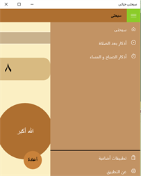 هذا البرنامج يعمل كسبحة ألكترونية و يوجد به أذكار الصباح و المساء و أذكار بعد الصلوات و بعض التسابيح اليومية