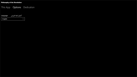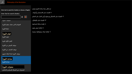 The App contains the Philosophy of the Revolution in both Arabic and English.