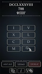 A simple to use tool, for three-way conversion between Arabic (decimal), Latin (Roman) and Greek (Hellenic) numeral systems. Special designed custom keyboards for each type of numeral system. Displays output as you type Copy/paste functionality No permissions No ads