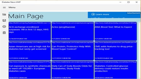 Diabetes News UWP is a Windows 10 targeted news application that provides the user with the ability to monitor what’s happening in the world of home beer brewing. It comes with 5 pre-selected RSS site, and allows the user to change these and or add up to 5 more sites. The application also provides the means to save interesting links, for future review.