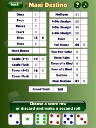 Dice-A-Rama Deluxe contains the original five Dice-A-Rama dice games as well as five brand new ones. In addition to the two Yatzy games in the original, there are two new variations with "WILD" dice. You also get a new Poker Dice game with wild dice, an exclusive game called "Maxi Destino", and a really frustrating quick-playing game called "Crag".