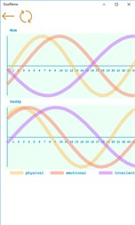 DuoRitmo is a biorhythm calculator app for one or two persons selected from your list. Store the birthdays of your family members, friends, sport-mates and have fun with checking your synergies.
