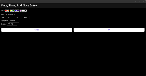 A simple and easy to use medication and dosage tracking app. Use it for tracking medicine dosages.