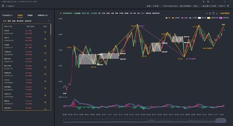 基于K线图数据 实时自动笔段画线、中枢标识 递归分析整体走势 作为买卖分析参考