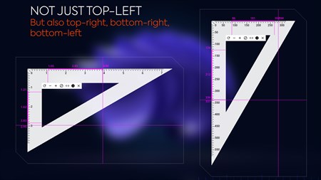 • Pixel, Millimeter, Inch: Switching by click the Triangle Ruler button or key P (pixel), M (millimeter), I (inch). • The target point continuously goes accompany with the mouse cursor for positioning and auto-sizing thoroughly. •• Using left click (or space bar) to mark and measure your selection partially. • Switch between the top-left, top-right, bottom-left, bottom-right zero point by: click the Rotate symbol, or using key R. • Lengthen or shorten by: click [-] / [+] button to make ruler longer or shorter; or using key S (Shrink) / E (Extend). • Click the navigation button or press key B (block) to lock or unlock moves to prevent accidental clicks. • Switch between 45°, 60° (30°) triangle ruler by pressing F. • Switch between angle (30° 60°) by pressing I. • To keep on screen Triangle Ruler floating over the desktop by selecting "Always on Top". • Move triangle ruler by every single pixel: CTRL / ALT + keyboard arrow. • Options to make ruler more useful: hide guide, reading strip mode.