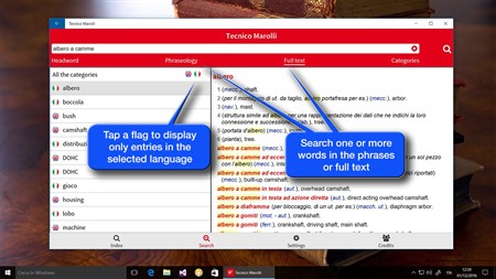 The app Marolli Technical Dictionary English-Italian/Italian-English, published by Edigeo, with its almost 200,000 entries represents a reliable and well-established reference tool for professional and academic users, translators, technicians, and companies that work with English-speaking countries.