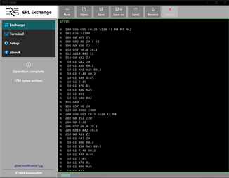 This app is a simple tool to create, save and load text-based files and transfer them to a device via serial connection. Initially this app was created especially to manage NC-programs and to transfer them to an appropriate machine. But all other devices with a serial interface are also supported. In version 1.2.3. a terminal-function was added to enable the transmission in dual-mode (read/write). This could be used to communicate with devices or modules which support a UART interface, like the HM-10 / HM-11 / HM-18 / HM-19 / Microchip RN4870/71 / ESP8266. Additional Info is available on http://epl-exchange.blogspot.de/.