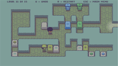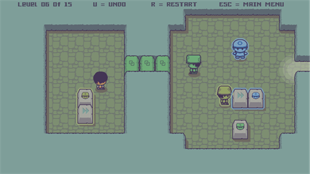 Use your puzzle skills to help the player escape the dungeon. Arrange the blocks in sokoban manner to move the pawns, and they will move blocks that aren't directly available to you. Plan their movements well, know when to start and stop, let them make new movement sequences for you, smart out your way to freedom.