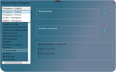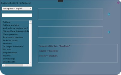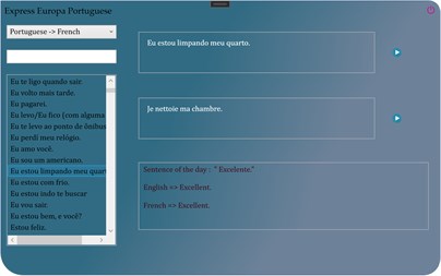 Express Europa Portuguese is a multilingual dictionary of the most common expressions, sentences and words in use. The expressions are translated from Portuguese to french, English and vice versa. The dictionary targets primarly Portuguese speaking persons. They can instantly learn the most used expressions in other languages. The dictionary gathers around two thousand words and expressions per language. Therefore, it is the go-to tool that tourists, travellers and languages enthousiasts need to quickly learn the bases of one of the languages. Moreover, are included the audio pronunciations of all the words, sentences and expressions. These audio pronunciations work offline, meaning there is no need of internet connection for the app to work effectively.