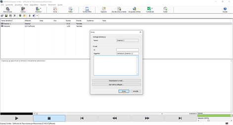 Le funzionalità del software di trascrizione includono: • Riproduzione a velocità variabile • Supporta i pedali USB per controllare la riproduzione lasciando le mani libere per la digitazione • Integrazione con sintesi vocale e motori di testo • Riproduce la maggior parte dei formati di file, compresi i file di dettatura crittografati • Possibilità di agganciare registratori portatili per caricare le registrazioni, perfetto per la trascrizione medica • Riceve automaticamente i file e invia automaticamente la trascrizione alla persona che ha inviato il lavoro