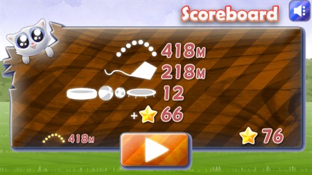 Help the sweet kitten of the lovely action game Extreme Kitten to jump as far as possible! Start by pushing the button at the right moment. If your timing is right, the cat will start off at the proper speed and hight, and you can help her by tapping on the different objects that are on the playground which will extend her jump. But be aware of the goals - the kitten might be rolled up like a ball, but is no football! Hitting the goals will only slow her down. How many meters will you make? Buy power ups with the points you have already made and improve your high score in your next attempt.