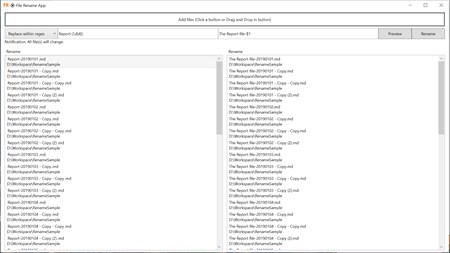 Support renaming 4 methods. - Replace as string - Add prefix - Add postfix - Replace with regular expressions
