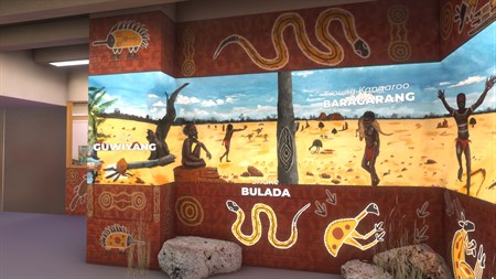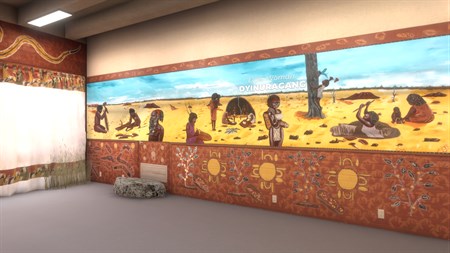Dharug is one of 250 Aboriginal languages with over 800 dialects nationwide. The Dharug language was traditionally spoken by the Dharug people which are said to have occupied the lands of Western Sydney, New South Wales. Here you can immerse yourself in the Chifley College mural, where you are introduced to elements of Dharug language, art, music and culture. Walk around the room and click on scenes and artefacts to find out their Dharug names and their translations in English. Great efforts are currently being made to reawaken Dharug as a spoken language today.