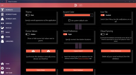 What are the foundations of fitness? Fitness Foundation is your best choice if you're looking for the answer or if you have found it already, but need a companion in achieving your goals. Track your progress in the gym with unlimited exercises, measurements and workouts. Know your calorie and macronutrient intake by automatically calculated values based on what you consumed during the day. Create workout plans and daily intake goals to fully realize the magnificent fitness lifestyle. We hope this application will help those seeking a healthier life all around the world, while showing the path to true happiness. Because in our opinion this is what fitness is all about. In Fitness Foundation you can: - save your exercises - save your workouts - save your workout plans - follow the duration and energy consumption of each exercise and workout - create muscle groups and measuring units - view charts, calculate BMI, BMR - save meals - save foods - follow daily calorie and macronutrient intake - calculate calorie and macronutrient goals - synchronize the database across every device you use via the cloud - export workout plans to Microsoft Excel - import the database from the previous version of the application (Windows Phone 7-8.1) and much more!