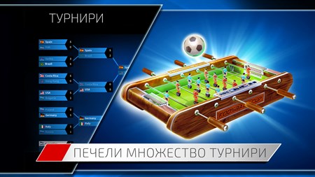 • Зашеметяваща визия. • Нови режими на игра: Световна Лига, Турнири, Предизвикателства, Подобрен режим за двама играчи • Нова физичен енджин за по-динамичен геймплей • Подобрен изкуствен интелект, създаващ уникален индивидуален облик на всеки тим с негови силни и слаби страни. • Играй и печели ресурси, за да отключиш изцяло нови маси, играчи и топки, с които да пресонализираш играта по свой вкус. • 51 национални отбора, с които да играеш във всички режими