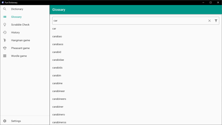 Fun Dictionary is an application that helps you find words in offline and online English dictionaries, play Hangman, Pheasant or Wordle games and much more.