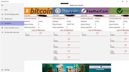 Give Me Coins is an app for monitoring real-time miners in give-me-coins.com. [Bitcoin, Litecoin, Feathercoin, Vertcoin and Peercoin] and Price from Bitstamp.net (Live Tile too) You can see too the Bitcoin and Litecoin Pools in real time.