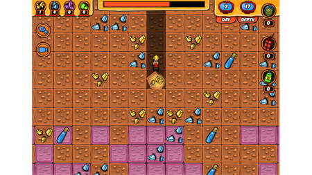 Your task is to dig deeper and deeper and collect gems until you find and mine the treasure. It's not as simple as it seems. The oxygen runs out with every descent, you need to extract minerals to improve your equipment and tools as well as to buy grenades and dynamite to make the descent faster.