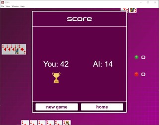 Play proceeds in a series of rounds. The players make "closed bids" for the top (face up) prize by selecting a card from their hand (keeping their choice secret from their opponent). Once these cards are selected, they are simultaneously revealed, and the player making the highest bid takes the competition card. Rules for ties in the bidding vary, possibilities including the competition card being discarded, or its value may "roll over" to the next round, so that two or more cards are competed for at once with a single bid card. The cards used for bidding are discarded, and play continues with a new upturned prize card. After 13 rounds, there are no remaining cards and the game ends. Players earn points equal to sum of the ranks of cards won (i.e. ace is worth one point, 2 is two points, etc., jack 11, queen 12, and king 13 points).