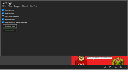 Uses the built-in GPS/GNSS device in your Windows 10 tablet and/or phone to map and log your trips. View the path in real time on the installed Microsoft Here map, log your trip and save it to a GPX file. Saved files can also be imported into Google Earth, Microsoft MapPoint or Streets and Trips and many other apps that read GPX files.