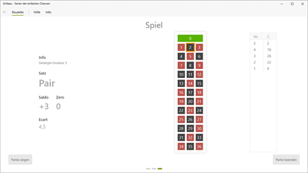 - New user interface - Option with Zero full loss/half loss added. - Minimum ecart increased to 3.8. - Converging probabilities expanded. - Indicator of a recommendation to end the game.