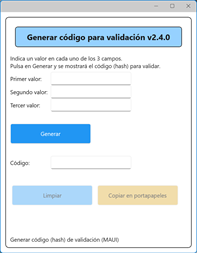 Utilidad para generar código HASH (SHA1) a partir de tres valores.