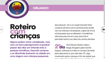 O principal objetivo do Guia Orlando é auxiliar o leitor no planejamento da viagem. Por isso, os guias oferecem um serviço completo sobre aluguel de carros, documentos exigidos para entrar nos Estados Unidos, roteiros com ou sem crianças, pacotes de viagem e dicas de bagagem, entre outros. Tudo isso com informações na dose certa para quem está indo pela primeira vez à terra do Mickey e novidades imperdíveis para quem já a conhece e pensa em visitá-la novamente.