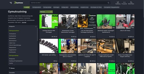 De flesta produkterna är representerade i GymPartner's sortiment, men det finns också upp till 35-40 st externa redskapsmärken representerade i begagnat listorna.